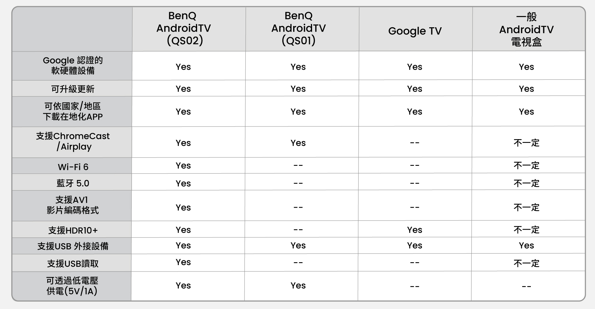 QS02 採用 Wi-Fi 6 網路通訊協定,提供更大頻寬,加快上傳和下載速度(或輸送量),並且採用 AV1 串流影片解碼格式,讓你看到不延遲、高解析、更穩定的串流影片。