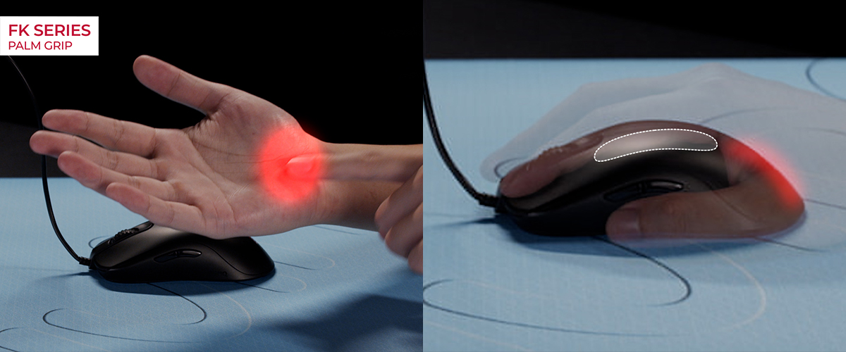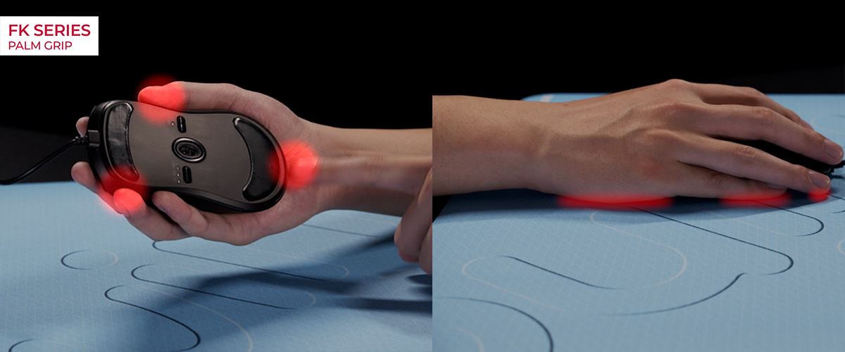 FK มีการออกแบบโปรไฟล์ที่ต่ำกว่า ซึ่งให้อิสระในการปรับที่ด้านบนมากขึ้น ดังนั้นจุดสัมผัสเดียวของเมาส์คือการใช้ฝ่ามือและนิ้วส่วนล่างของคุณ