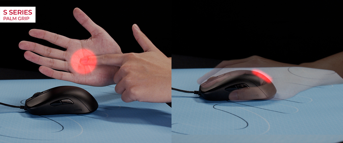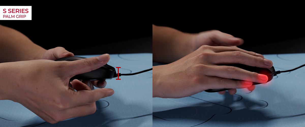 เมื่อเทียบกับรุ่น S ตำแหน่งโคกจะเปลี่ยนเพื่อลดการสัมผัสบริเวณฝ่ามือส่วนล่าง เมื่อจับกรงเล็บ เมาส์ S-series จะรู้สึกสั้นลง
