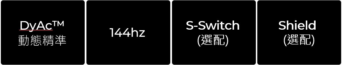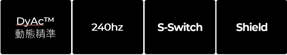 全新設計的螢幕選單與S-Switch並不只是美觀的裝飾品,新選單設計讓玩家可以選擇自己最常用的FPS螢幕設定選項在快捷選單第一層,並可以同步調整數值。更簡化且快速的步驟, 讓玩家及選手在賽事前或賽事每回合中的微調設定更便利。