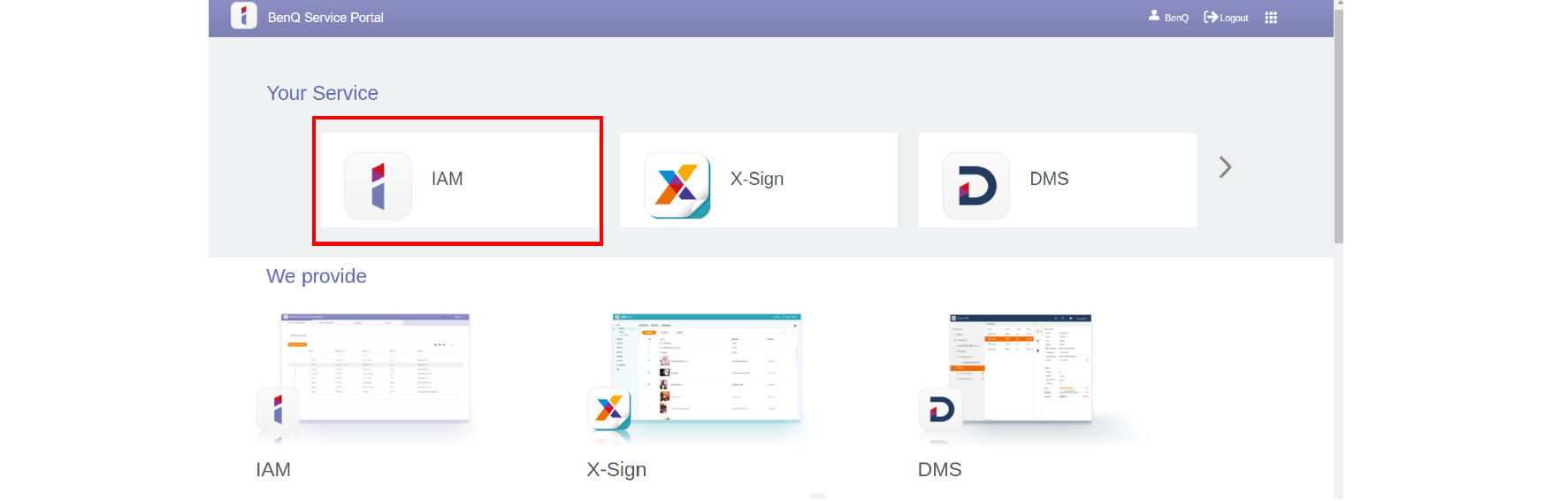 1. To set the permission for users, log in and choose IAM.