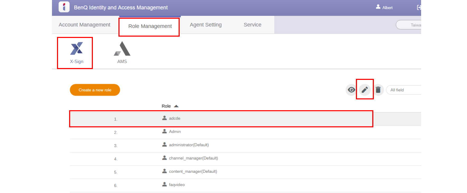 2. Select Role Management > X-Sign, then choose the account you want to set the permission to. Click the icon to continue.