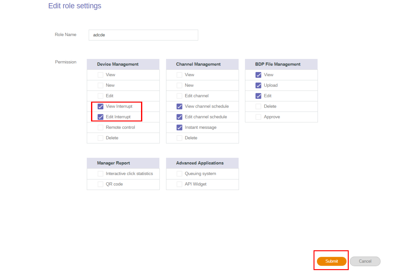 3. You can set the permission to the account by checking the boxes. Click Submit to proceed.