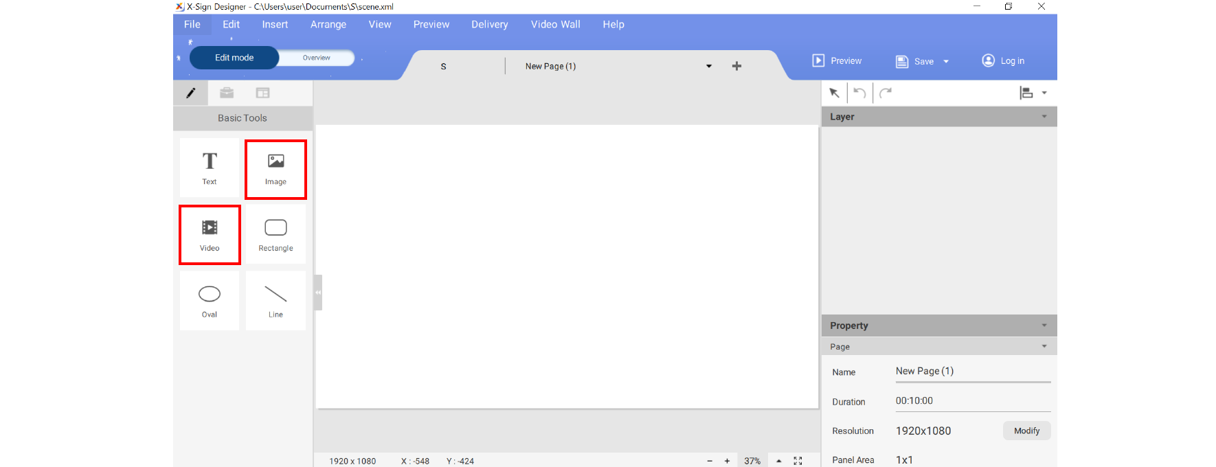 • You can also use X-Sign Designer without logging in the account by clicking Start now. You cannot upload content on X-Sign Manager only after logging in the account. Read Uploading your content from Designer for more imformation.
