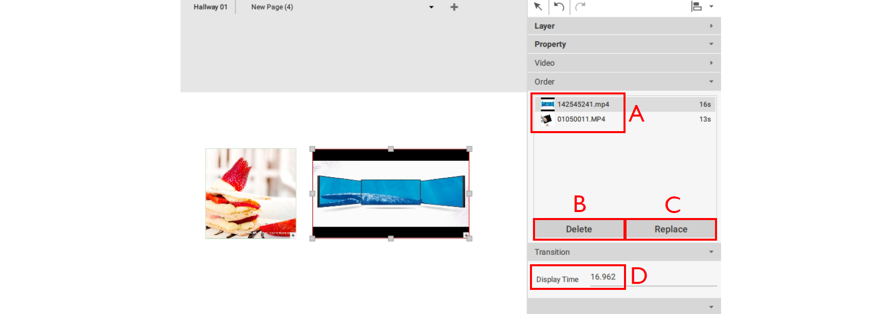 D. Display Time – Select a video and type in the duration time and press Enter.