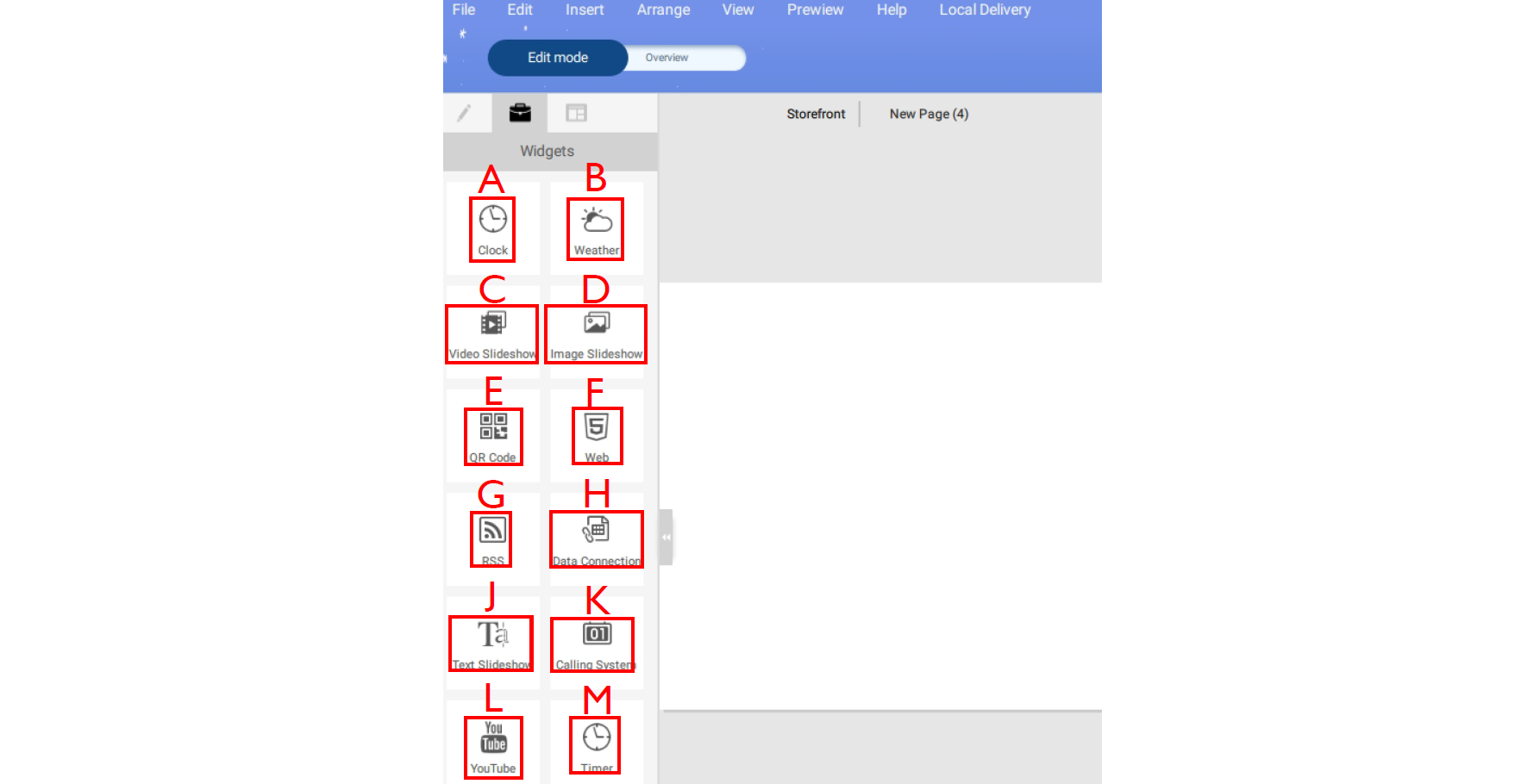 A. Clock - Add a clock to a page. The time is based on your device’s region setting. Adjust the settings in the Clock panel and the Content panel.