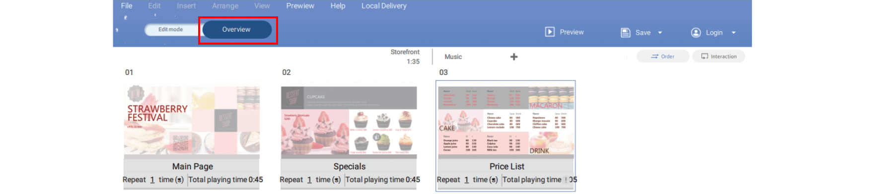 7. Select the icon on the page icon and click Set Repeat Time(s) or Set Total Playing Time to have the page repeat or change the time duration for a page.