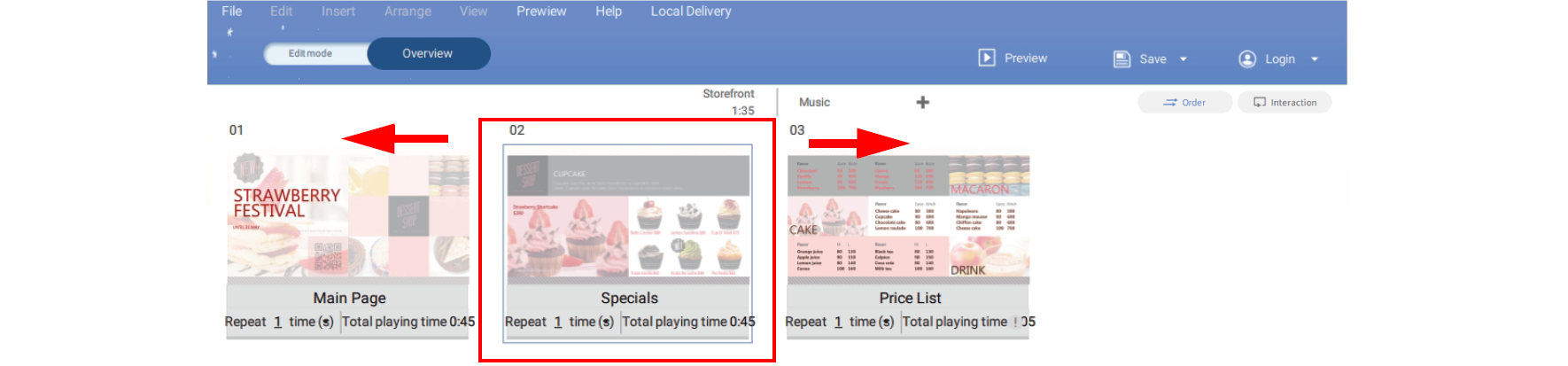 A. Order - To play all pages in order in a continuous loop, click Order.
