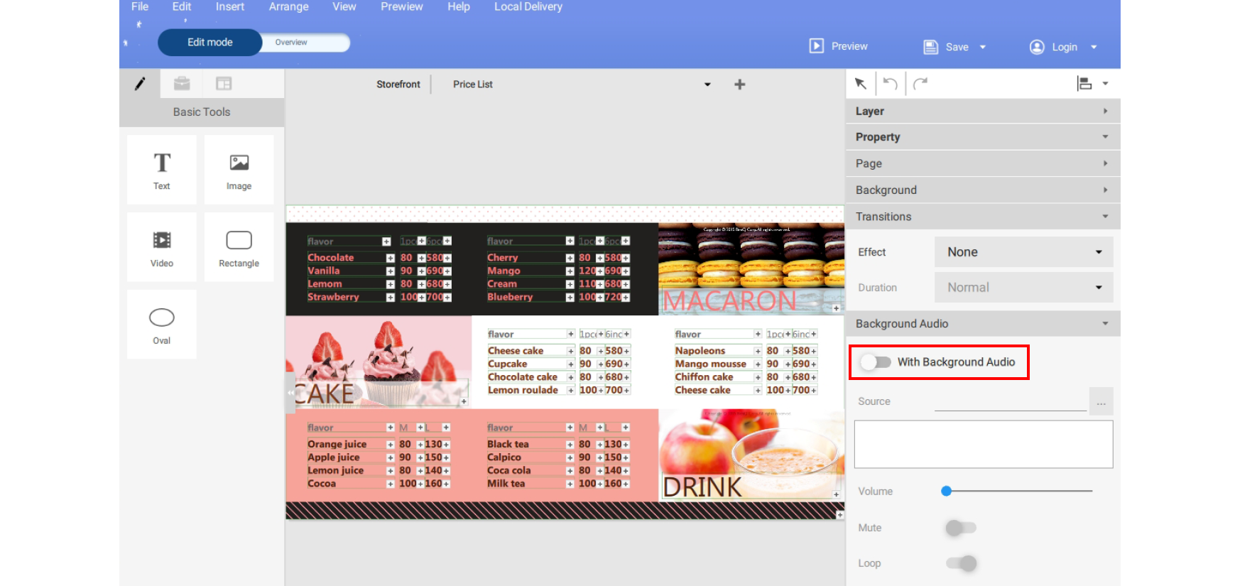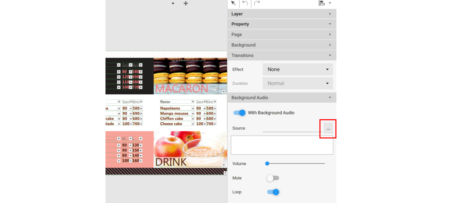 Note: The audio file will play on a continuous loop for the entire duration of all the pages.
