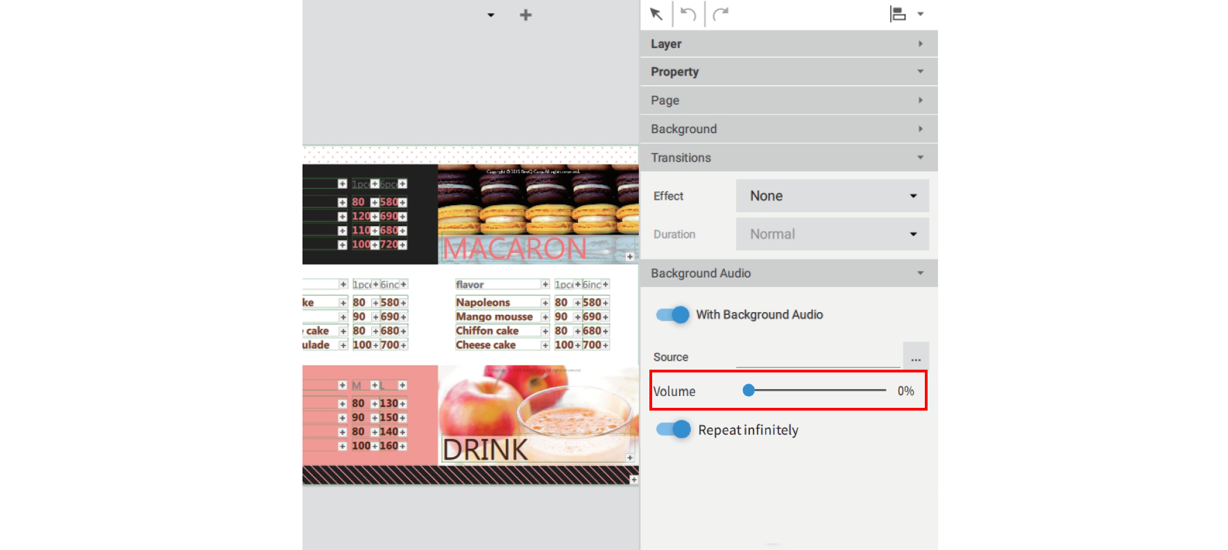 Note: Make sure no bounding boxes are selected in the canvas in order to access the Audio panel.