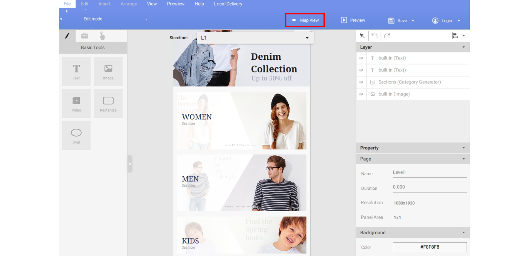 3. You can preview the layout of the Interactive project by clicking on Map View.