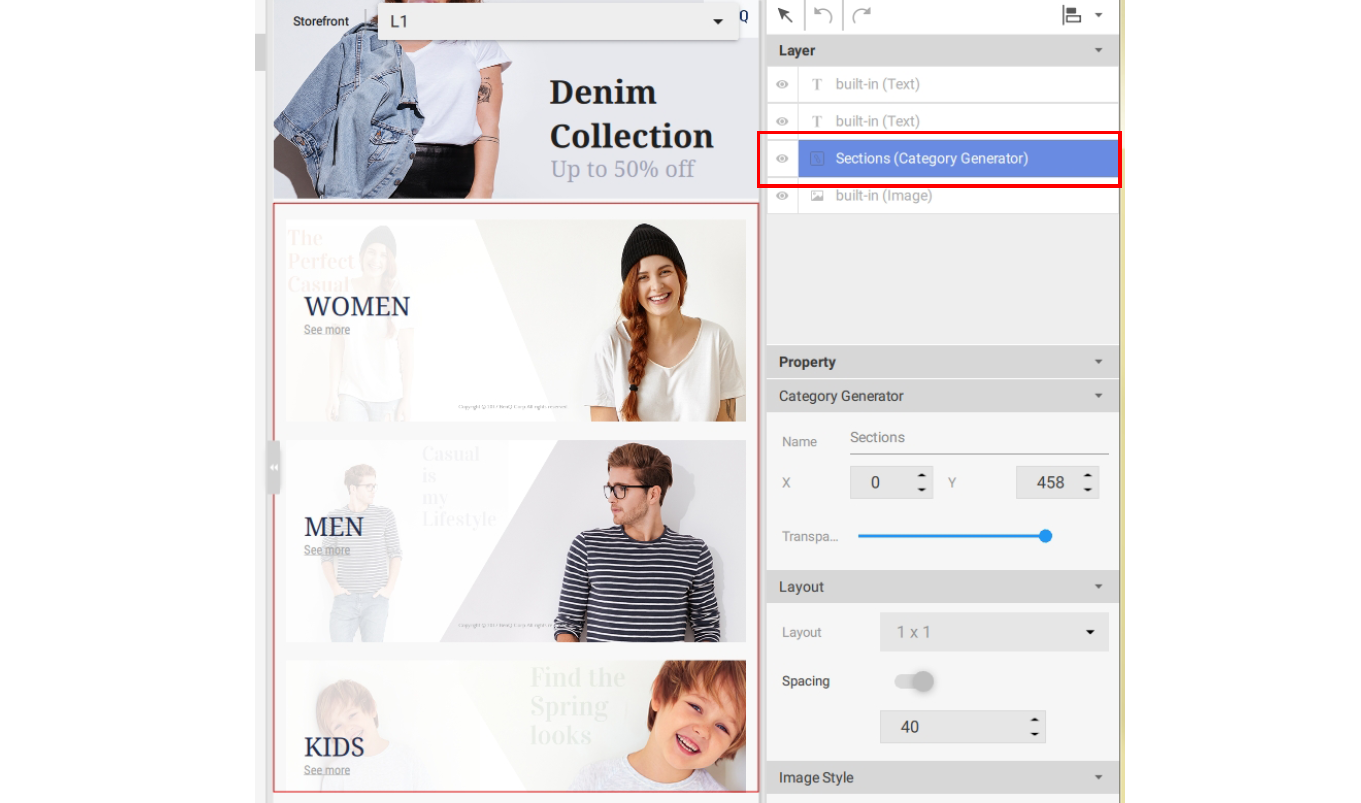 F. Edit Visible Area – Click the icon to change the positioning of the category image.