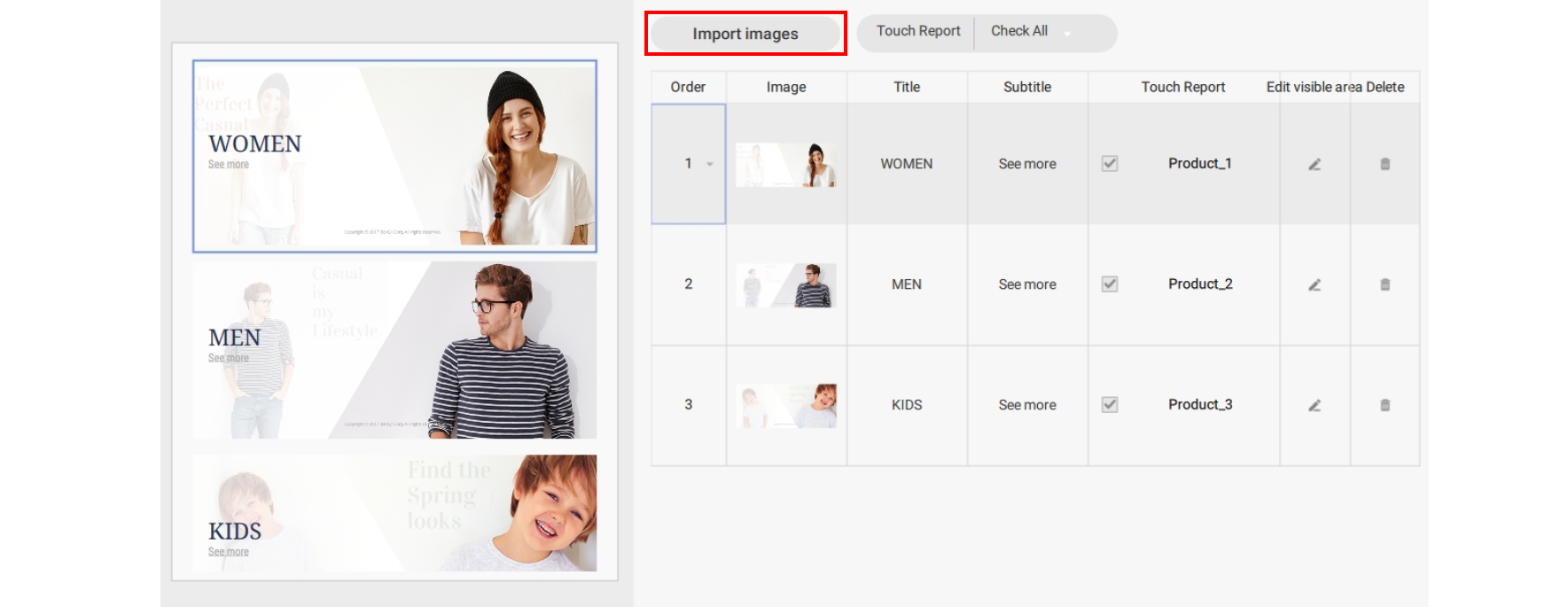 5. You can change the Touch Report settings for all categories by clicking the check icon. Refer to Enabling Interactive Statistics for more information.