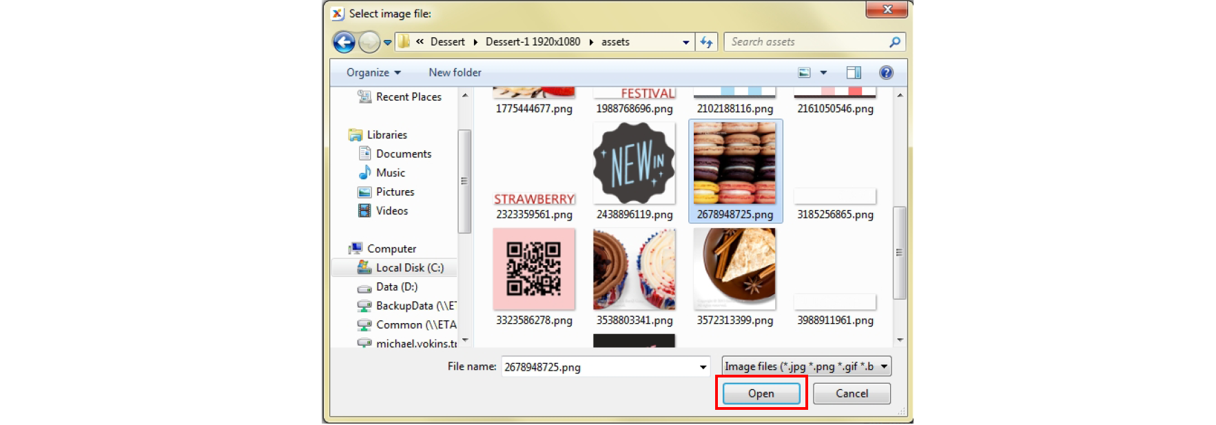 B. Image – Click the image icon and choose a new image from your hard drive. Click Open when finished.