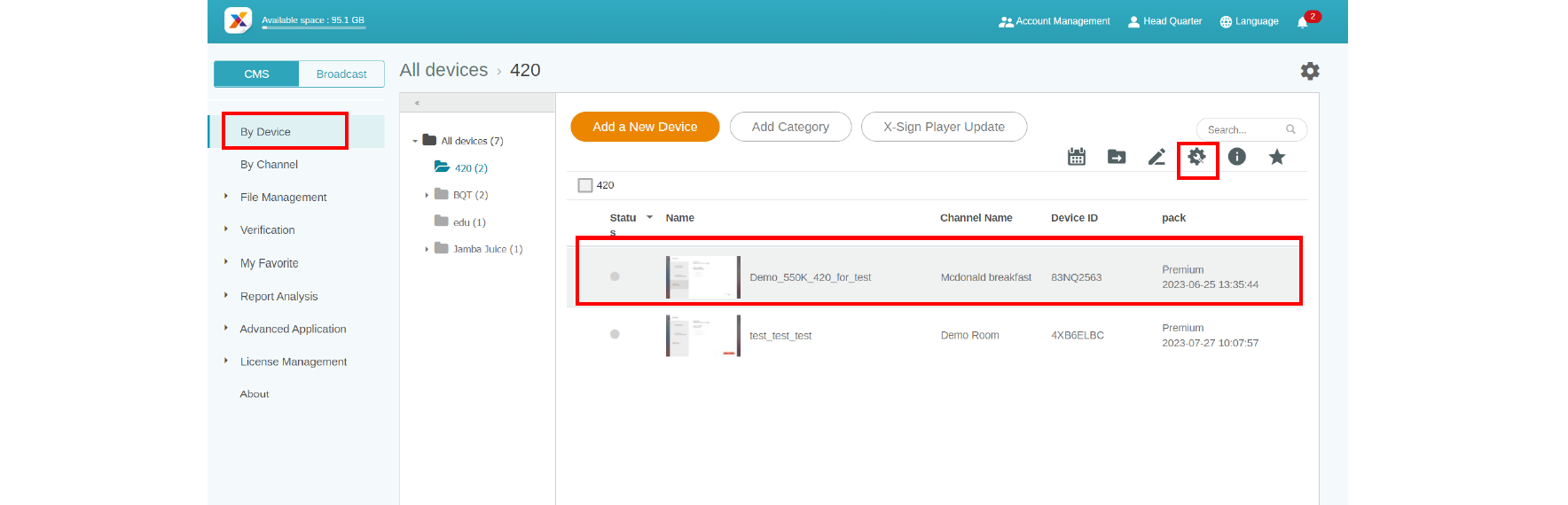 1. Make sure that your device is already paired with X-Sign Manager and is online.