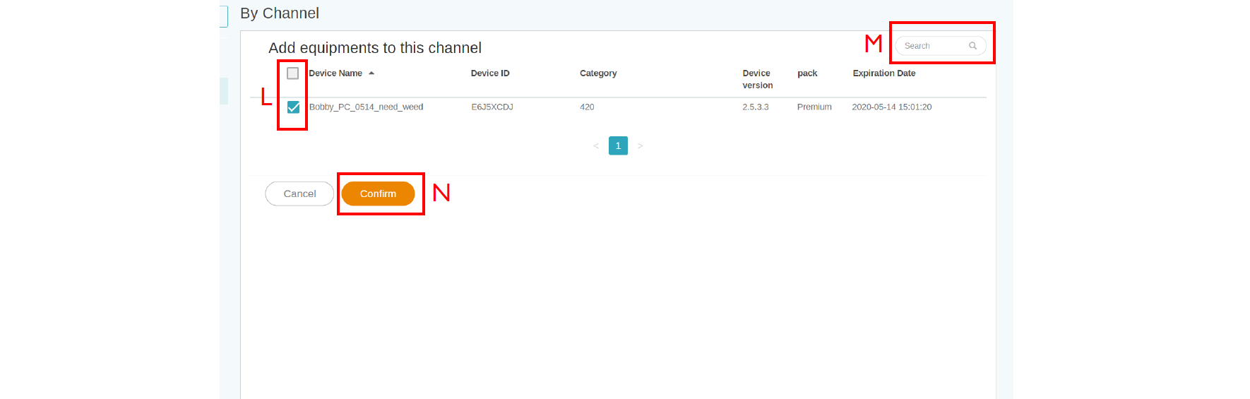 L. Select multiple devices to add into the channel.