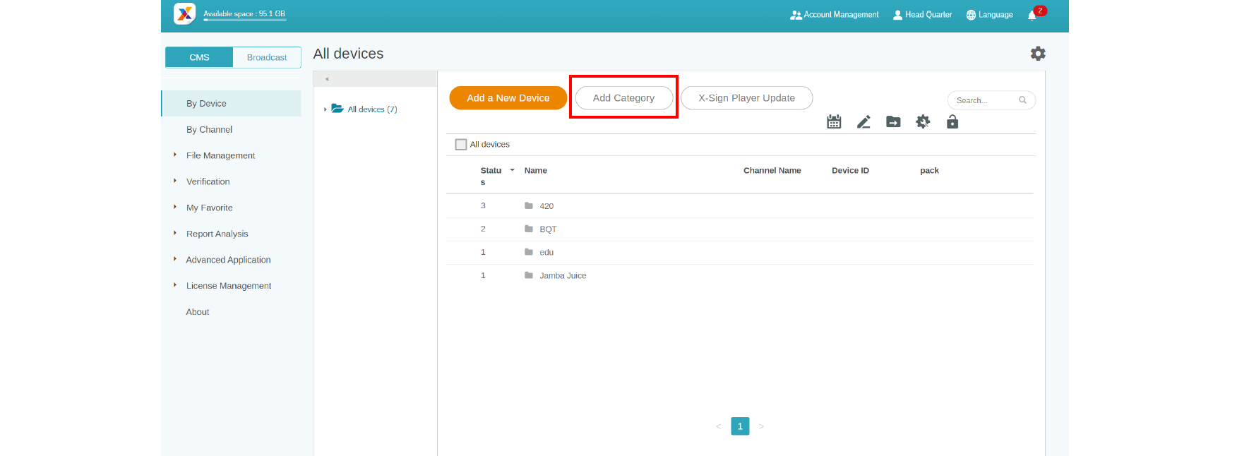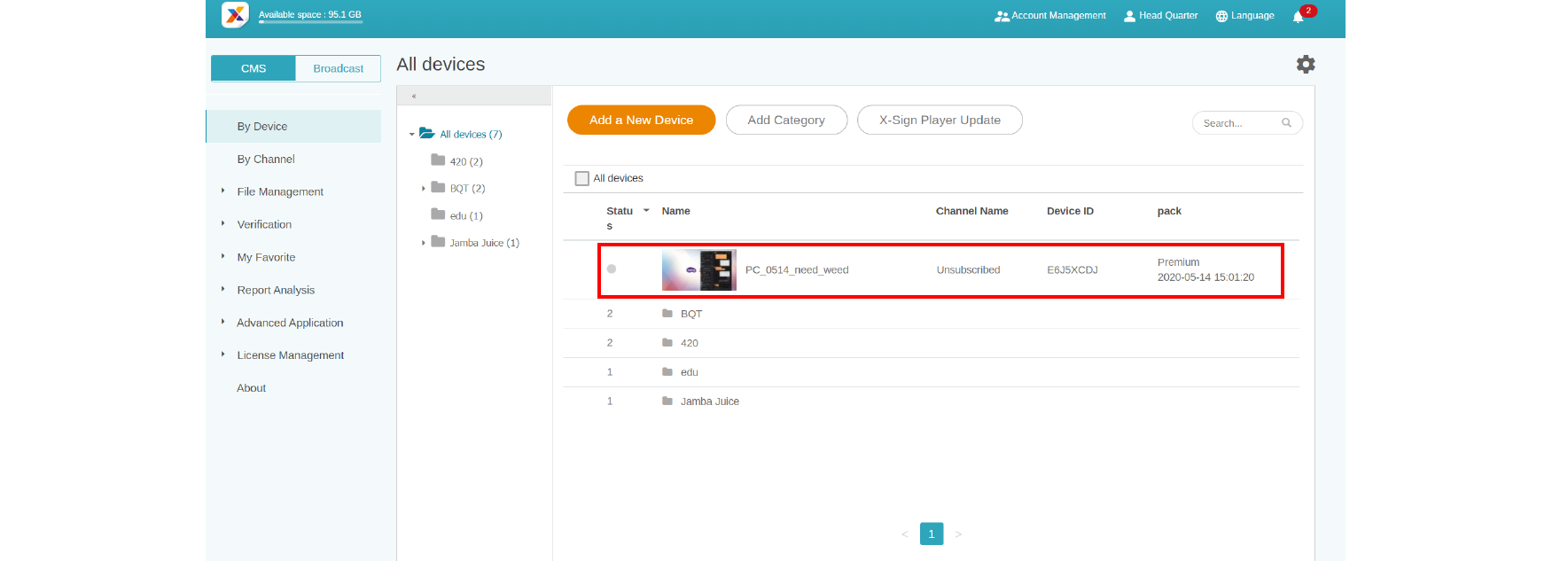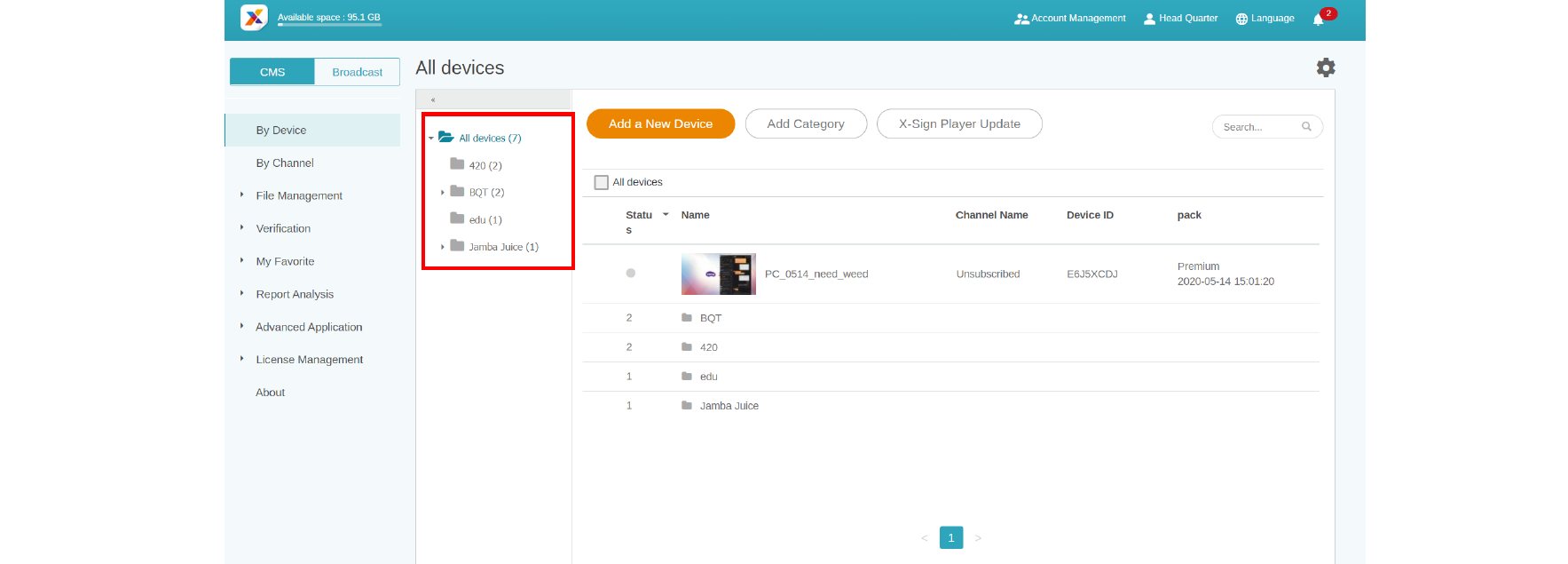 In X-Sign Manager, you can manage devices with hierarchical structures which make you control multiple devices with ease. Click here to watch the demonstration video.