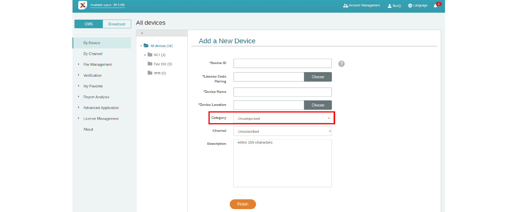 3. Click Add a New Device then set it to the related category.