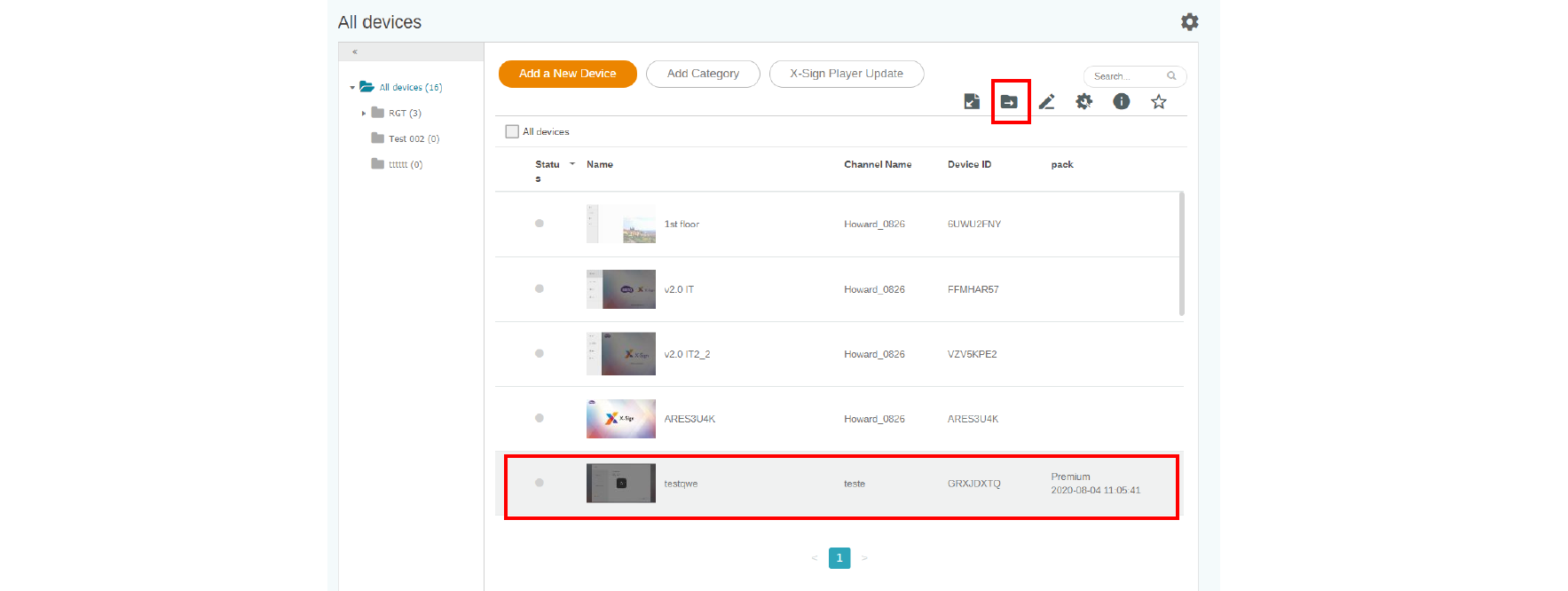 5. For existing device(s), click the icon to transfer it to the correct folder.