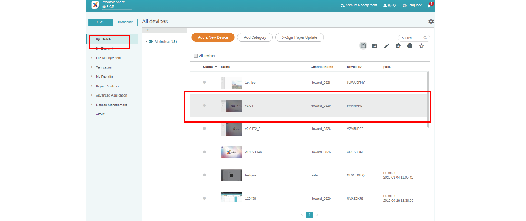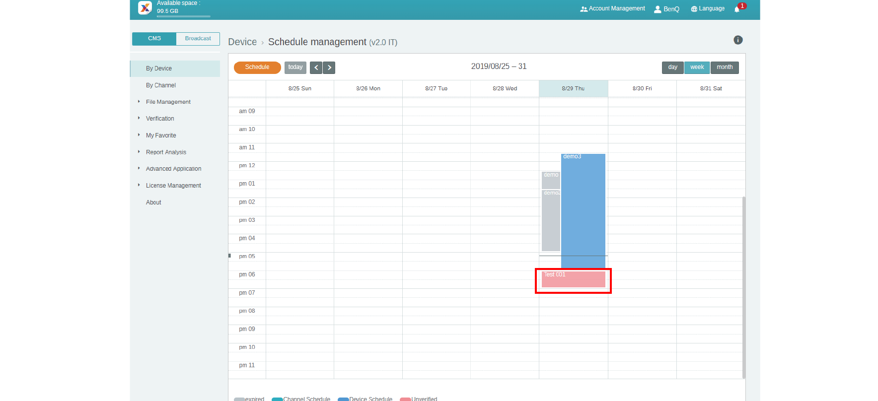 1. Go to By Device, then choose the device you want to play the content. Click the schedule icon to go to the schedule management page.
