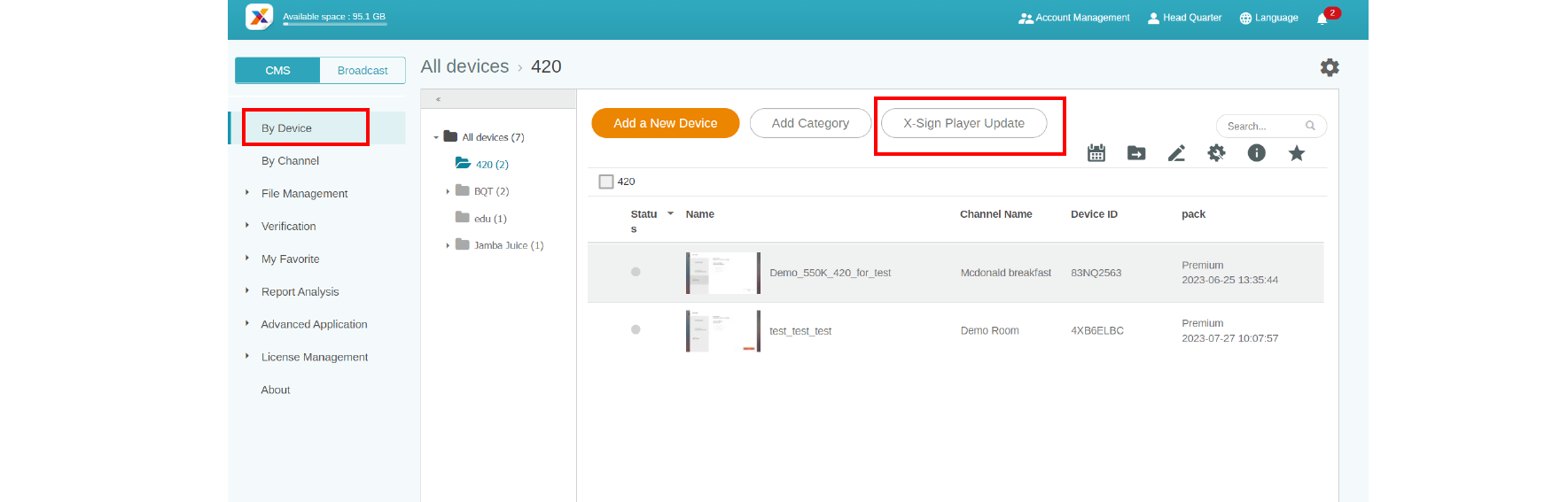 With X-Sign Manager, you can easily update X-Sign Player on your devices remotely. Click here to watch the demonstration video.