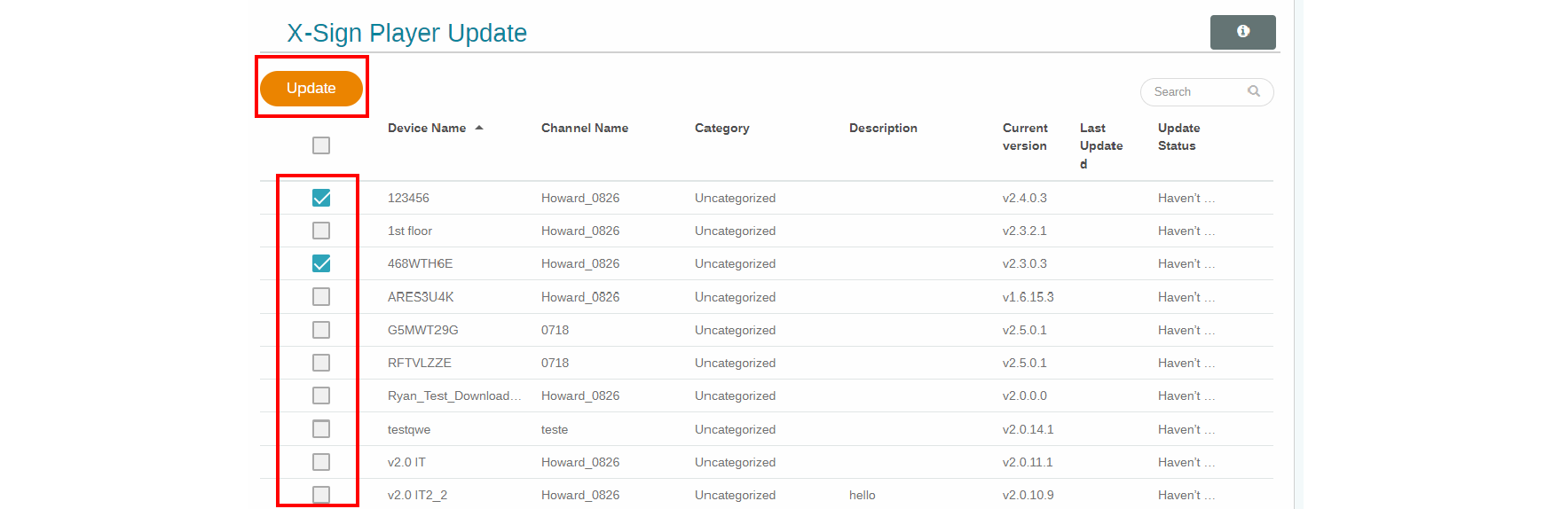 2. You will see a list of devices available to be updated. Select the device(s) you want to update.