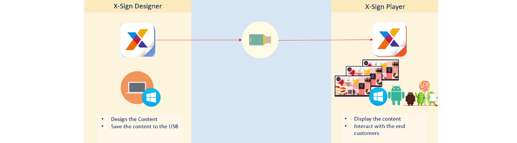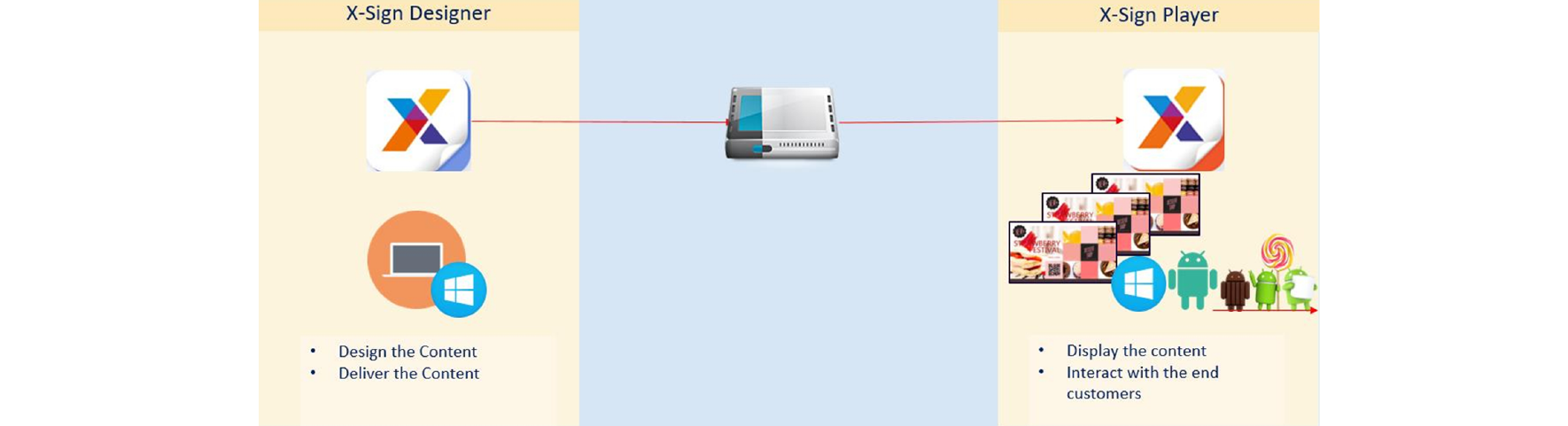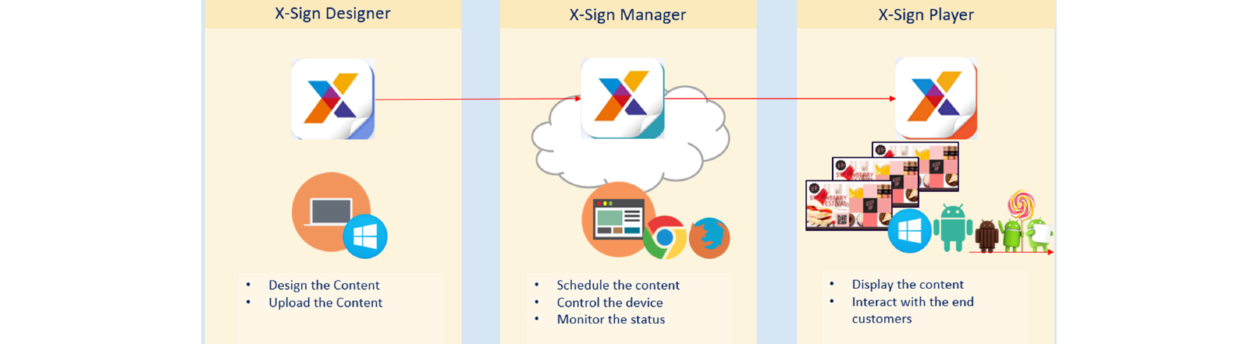 In this section, we'll explain how to manage content in X-Sign, control the player, and set up playlists.